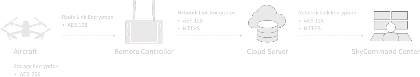 Privacy protection: Data involving user and aircraft information, including flight logs, locations, and account information can only be physically accessed via the aircraft locally.